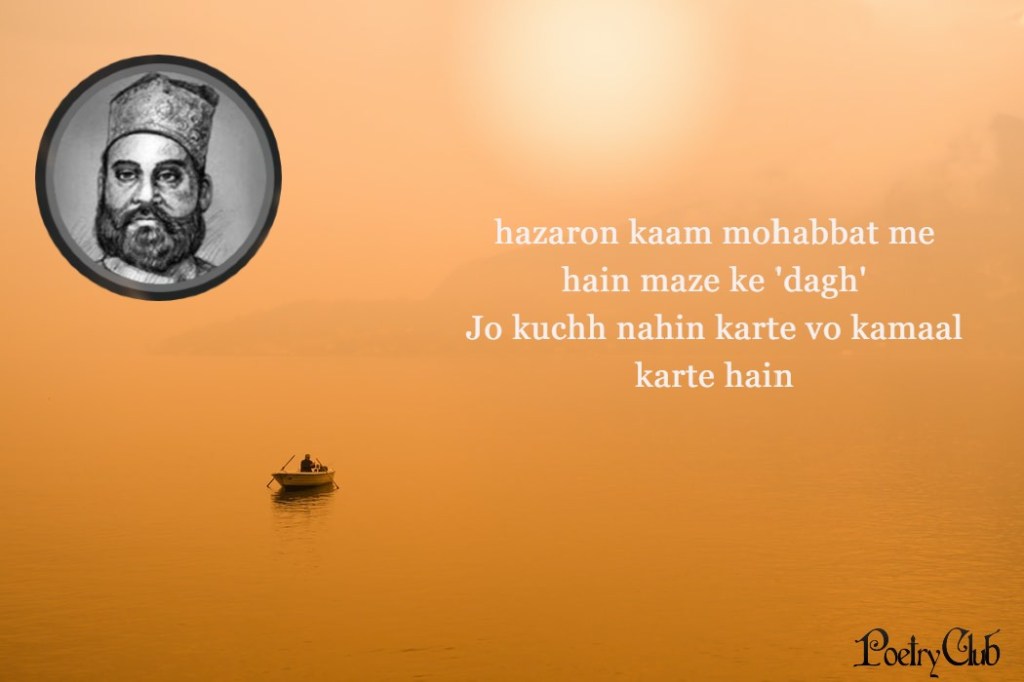 Nawaab Mirza Khan Daagh Dehlvi was a marvellous Mughal poet known for his romantic Urdu ghazals focussing on his first love and the pangs of separation thereafter. He wrote romantic and sensuous poems and ghazals in simple and chaste Urdu, minimising the usage of Persian words. He took the pen name Daagh Dehlvi ( where Daagh is an Urdu word referring to stain or grief while Dehlvi means someone who belongs to Delhi). This refers to the fact that he belonged to the Delhi school of thought.
