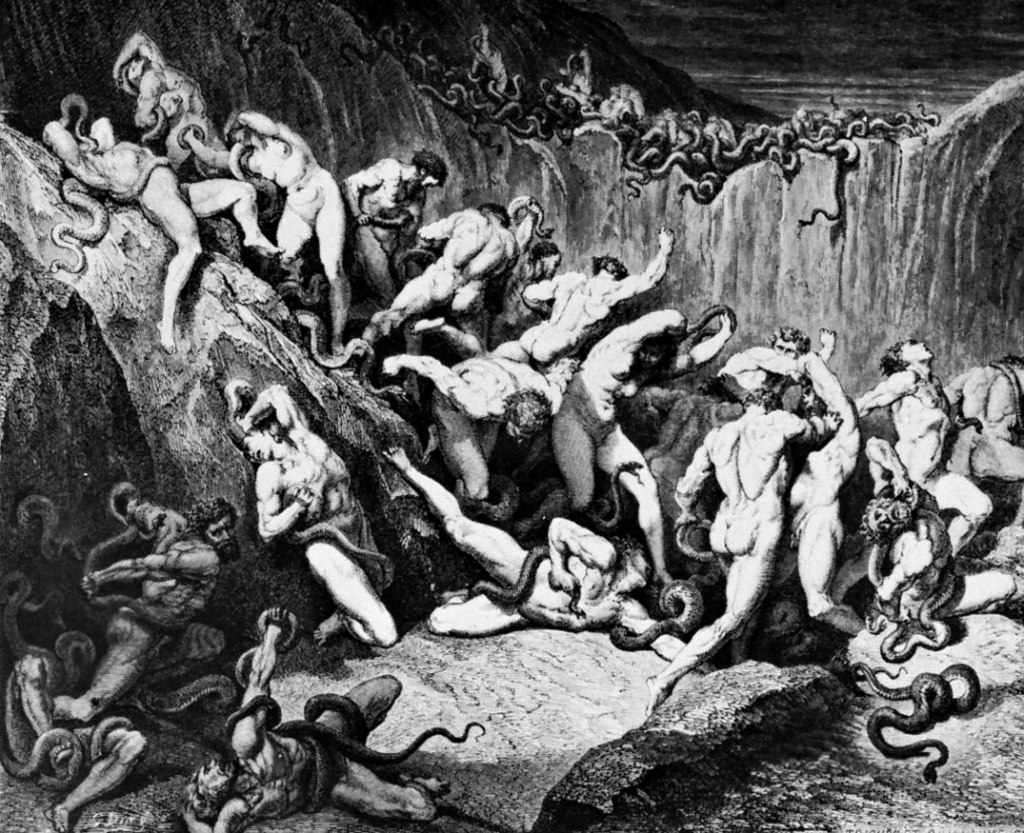 ‘Fraud‘, the 8th and second last circle, according to Dante is the second-worst sin for here are punished the people who consciously fooled the innocent for selfish results. Astrologers, seers, are all made to walk backwards, without ever being able to see what lay ahead, a punishment quite worthy of the sin.