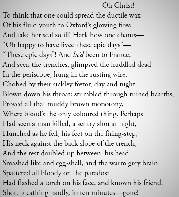 The poem “God! How I hate you, you young cheerful men” by Arthur Graeme West in 1918 shook the author every single time he read it.